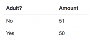 Looks weird, right? Let me explain. Condition YEAR(birth_date) < 2001 will return one of two values - TRUE or FALSE. In other words, 1 or 0. And that's exactly what we need to group by - whether the person is adult or not. Here's the result view in Blade: