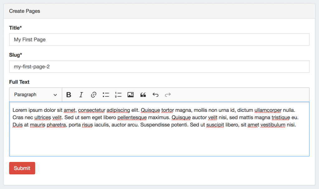 We have a form to add a page, and our goal is to have Slug field auto-generated, as we finish typing in the Title.