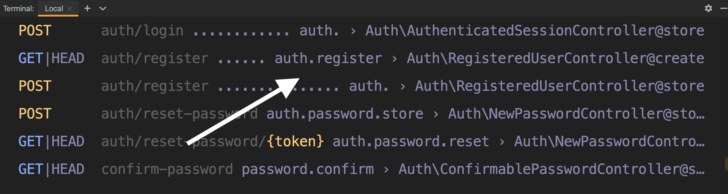 Route::get('register', [RegisteredUserController::class, 'create']) ->name('register');