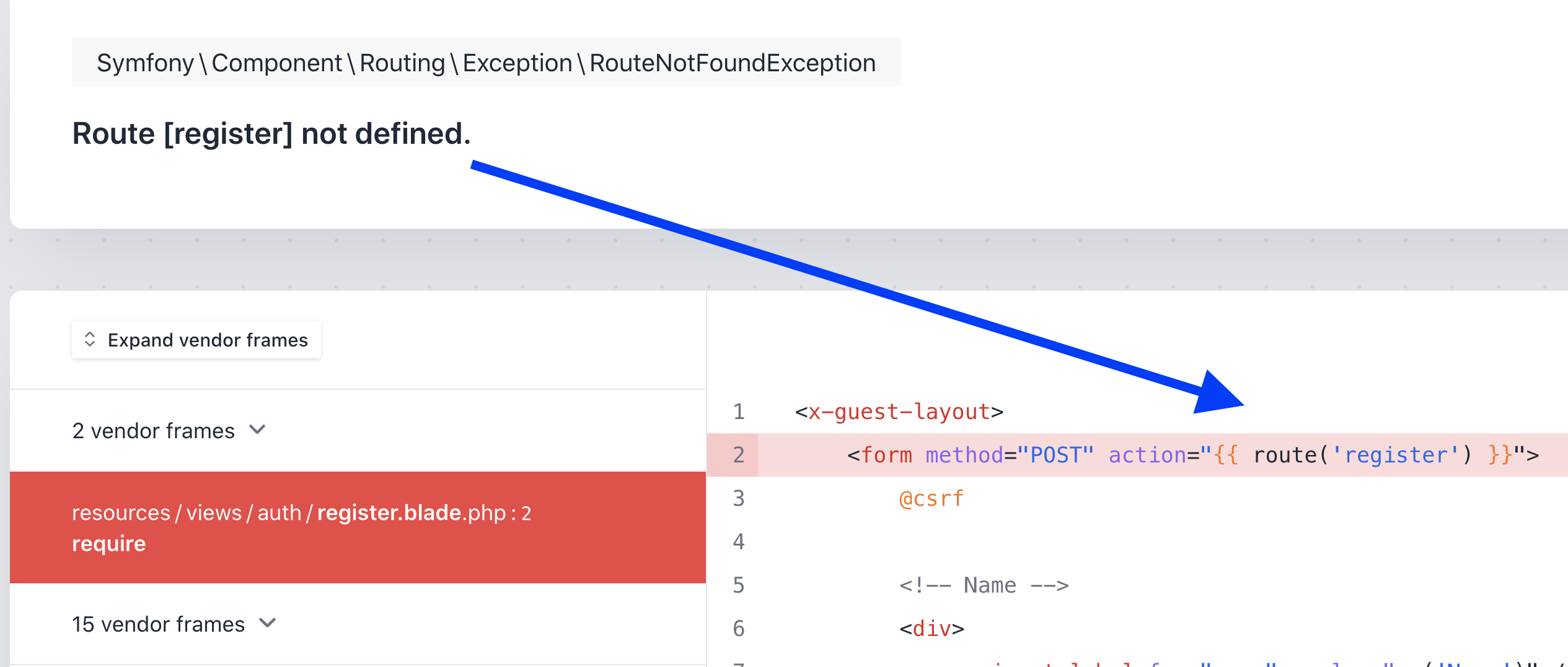 If you build links and call them by route names, you may get an error like "Route [register] not defined". But you could swear that the name is correct! I will show you the easiest way to debug and fix it.