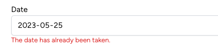 use App\Http\Requests\StoreExpenseRequest;use App\Models\Expense; // ... public function store(StoreExpenseRequest $request){ $hasExpenseSavedForUser = Expense::query() ->where('date', $request->input('date')) ->where('user_id', $request->input('user_id')) ->exists(); if ($hasExpenseSavedForUser) { return back()->withErrors([ 'date' => 'Expense already saved for this user on this date' ]); } Expense::create($request->validated()); return to_route('expenses.index');}