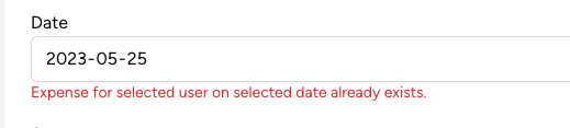 It works as expected, and Validation will be triggered if the Expense already exists for the User on the same Date: