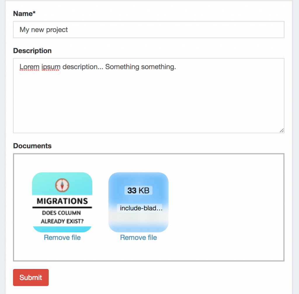 First, what we're building here. A simple for to add Projects, where you can also upload multiple files for every project.